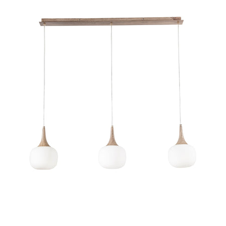 Sospensione lineare in metallo con tre diffusori in vetro Bianca/Legno 3Xe14 97X150X87Cm