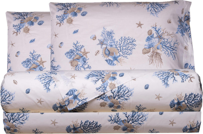 Completo letto lenzuola 100% cotone made in italy CORALLI AZZURRO