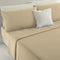 Realizzato interamente in 100% puro cotone, questo completo lenzuola è disponibile in due misure: una piazza e mezza e una piazza e mezza francese. L'immagine del prodotto mostra un tessuto liscio e uniforme, tipico delle lenzuola in cotone di alta qualità. La tinta unita permette di abbinare facilmente le lenzuola a diversi stili di arredamento. Il set include lenzuolo superiore, lenzuolo inferiore con angoli e federe, per un completo coordinato.