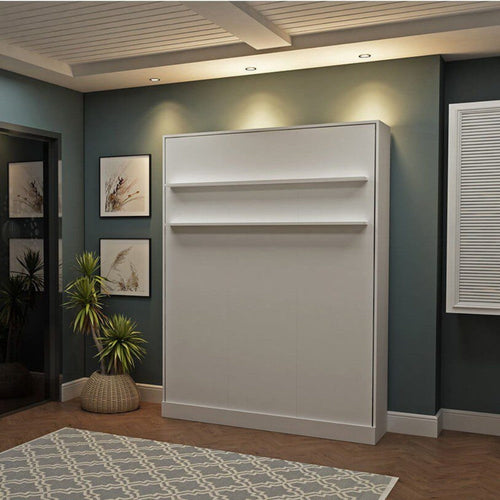 Mobile Letto a Scomparsa Singolo Salvaspazio con Materasso Incluso Pieghevole Bianco