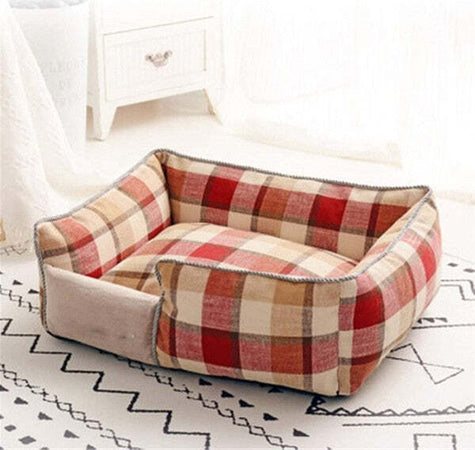 Letto Per Cani Traspirante Cotone Lavabile Divano Tg.xl 76 X 71 Cm Griglia Rossa