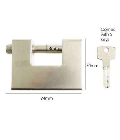 Il Lucchetto Armato o Corazzato, può vantare un solido corpo in Acciaio Temperato con dimensioni pari 94 mm. Studiato appositamente per resistere ad eventuali manomissioni, ti consentirà di proteggere, cancelli, porte, serrande e tanto altro con estrema semplicità. professionale e super resistente lucchetto catenaccio cementato con chiave e cilindro europei. Dotato di 5 chiavi per la sua apertura.