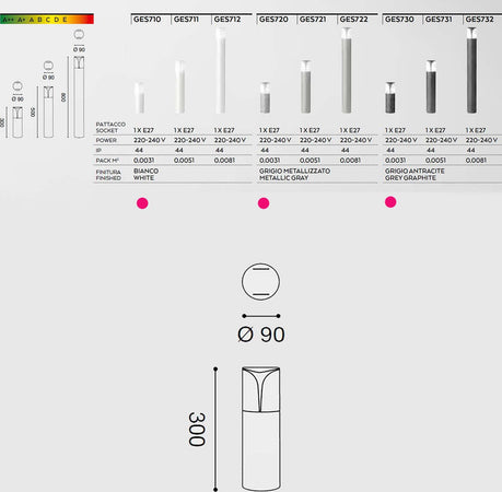 Lampioncino Gea Led STELE GES710 E27 LED IP44 H30 alluminio bianco lampada terra moderna segnapasso esterno