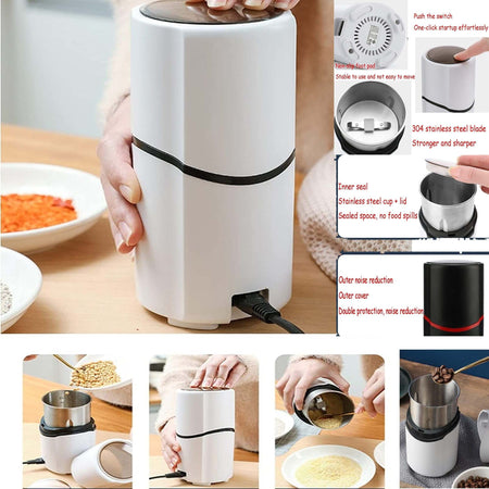 Questo macinacaffè ha una lama affilata in acciaio inossidabile per una macinatura veloce e uniforme, con un potente motore elettrico da 150W in grado di macinare in modo rapido e silenzioso i chicchi di caffè nella condizione desiderata. Il macinacaffè è facile da usare, basta premere l'interruttore per funzionare. Realizzato in materiale ABS resistente all'usura, resistente alle cadute, non tossico e durevole e offre una sensazione confortevole. Questo macinacaffè è molto adatto per macinare chicchi di caffè, noci, semi, erbe aromatiche, spezie e così via, il che può farti risparmiare energia e tempo.