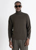 Questa maglia Relaxed Fit in misto Viscose Nylon si distingue per il suo collo alto e il colore verde militare scuro, che dona un tocco di eleganza sobria e versatile.