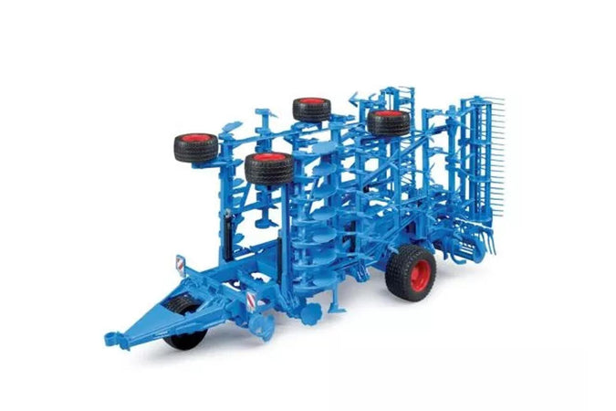 L'agricoltura deve adeguarsi costantemente a nuove sfide, come ad esempio la riduzione delle precipitazioni e l'aumento della siccita'. Per affrontare questa sfida, l'estirpatore Koralin offre una soluzione versatile per la gestione delicata delle superfici agricole. Ora questo dispositivo all'avanguardia per la lavorazione dei campi in scala 1:16 si puo' trovare nel mondo tematico dell'agricoltura BRUDER. Tramite una leva posta sul telaio e' possibile commutare dalla modalita' di spostamento alla modalita' campo. Entrambi i grandi elementi laterali con dischi e dentature riprodotti fedelmente possono essere ripiegati verso l'alto per l'azionamento. Ripiegati verso il basso, questi elementi insieme ai rulli di avanzamento e alle dentature funzionanti, come nell'originale, mostrano le dimensioni impressionanti di questo rimorchio. I trattori delle serie 3000 e 4000 di BRUDER si adattano perfettamente a questa imponente combinazione di estirpatore ed erpice a disco