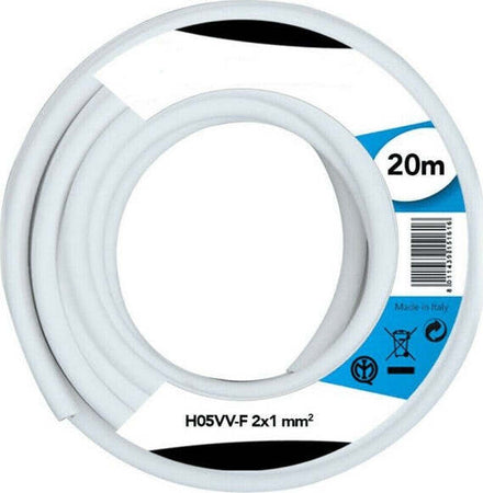 Cavo Elettrico Prolunga 20mt 2x1 Mm H05vv-f Matassa Filo Elettrico Bianco