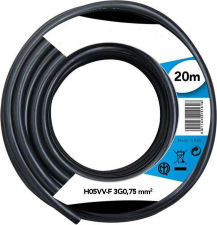 • 1 x Cavo Elettrico Prolunga 20mt 3G0,75 mm H05VV-F Matassa Filo Elettrico Nero