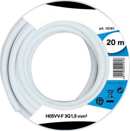Cavo Elettrico Prolunga 20mt 3g1.5 Mm H05vv-f Matassa Filo Elettrico Bianco