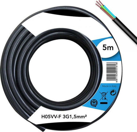 Cavo Elettrico Prolunga 5mt 3g1.5 Mm H05vv-f Matassa Filo Elettrico Nero