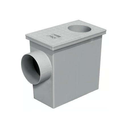 Il pozzetto presenta uno scarico laterale con un diametro di 10 millimetri, che permette il collegamento del tubo di drenaggio per convogliare l'acqua in modo efficiente.