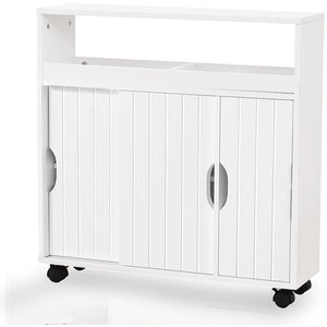 Super richiestoMobiletto Bagno 4 Ruote e Ante Scorrevoli Carrello Salvaspazio Stretto Multiuso