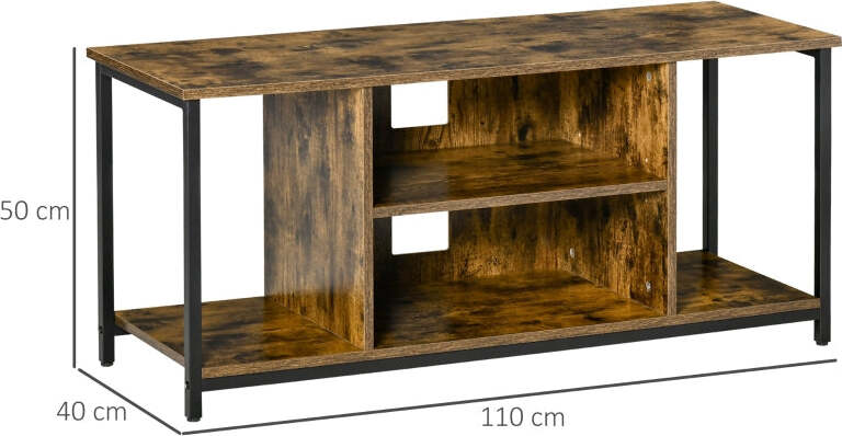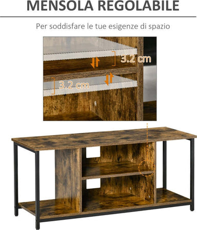 Mobile TV da Salotto in Stile Industriale, Legno e Acciaio, 110x40x50cm marrone e nero scaffale F839-184A
