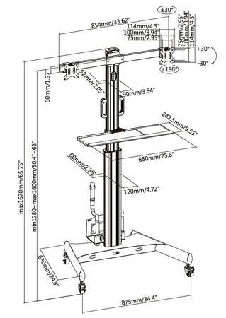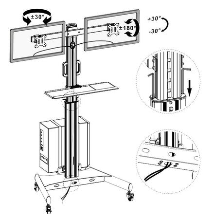 Trolley da Pavimento con Mensola e Porta PC per 2 TV LCD/LED/Plasma 13-32''