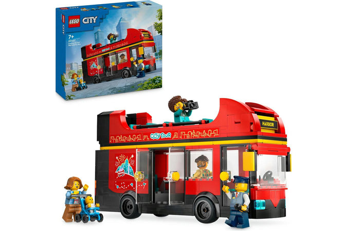 Regala ai bambini divertenti avventure in citta' con questo Autobus turistico rosso a due piani LEGO City (60407) per i bambini dai 7 anni in su. I bambini possono ruotare il display della destinazione, raccogliere i passeggeri in attesa e farli sedere sul piano inferiore o sul piano turistico all'aperto. Questo modello iconico e' fantastico da esporre e include 5 minifigure, tra cui un bebe' nel passeggino, per il gioco di fantasia e la narrazione di storie. Questo giocattolo dell'autobus rosso LEGO City include una dettagliata guida alla costruzione stampata e istruzioni 3D nell'app LEGO Builder, un assistente nella costruzione digitale con strumenti intuitivi di ingrandimento e rotazione che consentono ai bambini di visualizzare i modelli da tutte le angolazioni mentre lo costruiscono. I set LEGO City sono fantastici regali di Natale e di compleanno per i bambini, con meravigliosi veicoli giocattolo, strutture realistiche e personaggi divertenti che ispirano il gioco di fantasia senza limiti. I bambini possono aggiungere questo autobus LEGO City ad altri set di gioco (disponibili separatamente) della gamma LEGO City per espandere il mondo delle possibilita' di gioco. Autobus a due piani giocattolo: gli appassionati di veicoli giocattolo adoreranno questo playset dell'autobus turistico rosso a due piani LEGO City per i bambini e le bambine dai 7 anni in su. Cosa c'e' nella scatola? Questo set include tutto cio' di cui i bambini hanno bisogno per costruire un bus giocattolo a due piani con un piano turistico all'aperto, piu' 5 minifigure, incluso un bebe' con passeggino, per divertenti giochi di ruolo. Per i bambini che amano il gioco di fantasia: i bambini possono ruotare il display della destinazione per scegliere tra il centro, il porto, il museo o il parco di LEGO City