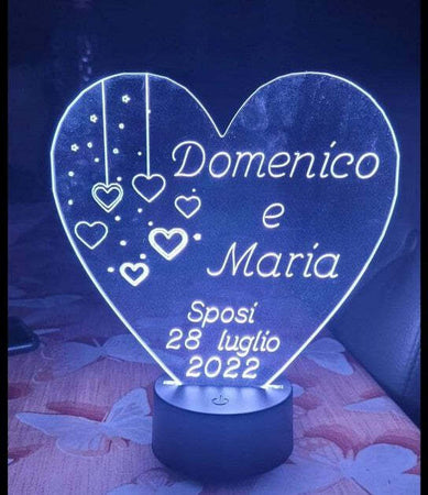 Lampada plexiglass luce led rgb cuore per sposi matrimonio promessa cerimonie personalizzare