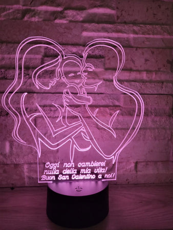 Lampada plexiglass lume regalo san valentino famiglia luce led rgb cavo usb e batterie