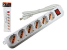 Multiprese 6 posti con interruttore luminoso, 10/16A, bipasso/Schuko 250V-Max. 2500W. Cavo H05VV-F 3G1.0mm - 2x1.5 mt. con Spina 16A 2P+T.