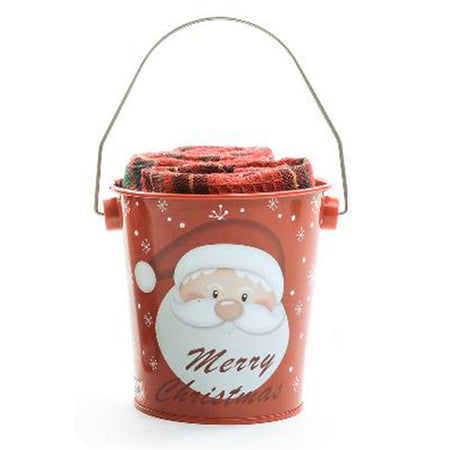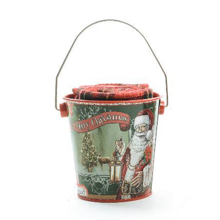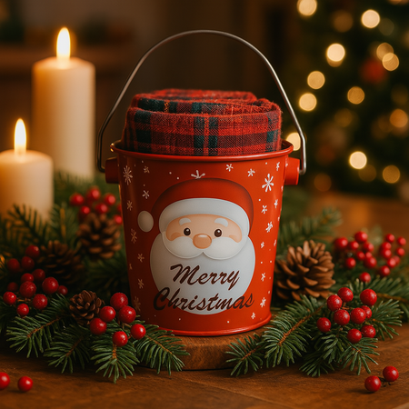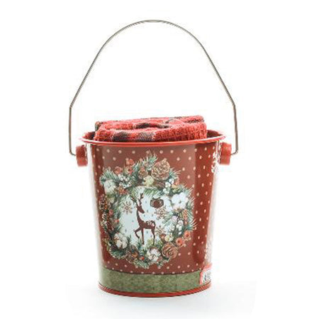 Cestino natalizio in latta con 2 canovacci in tessuto per decorazioni natalizie