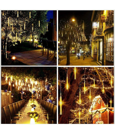 LUCI DI NATALE DA ESTERNO NATALIZIE LED EFFETTO PIOGGIA STELLA CADENTE METEORITI, SERIE DA 8 TUBI LED - LUCE BIANCA CALDA - USO ESTERNO INTERNO