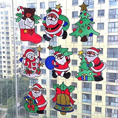 Set 2pz Decorazioni Adesive Natalizie 30cm Natale Per Vetro Finestre Vetrine Stickers