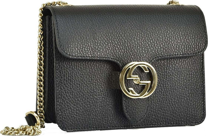 Gucci Borsa Interlocking a Mano Nera Donna Pelle Dollar Calf Logo Mod. 510304 CAO0G 1000 da donna