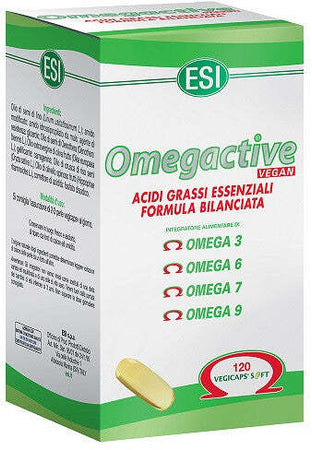 Integratore alimentare ricco di grassi insaturi: mono (Omega 7 e Omega 9) e polinsaturi (Omega 3 e Omega 6), 100% vegetali in una perla vegetale VEGICAPS SOFT.