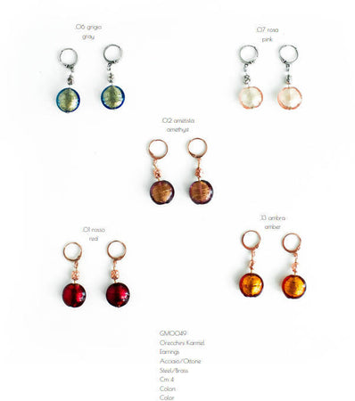 Orecchini Donna in Vetro Di Murano Grigii Bijou Fashion Artigianale Made in Italy in Ottone E Acciaio Con Perle Realizzate a Mano 4 Cm