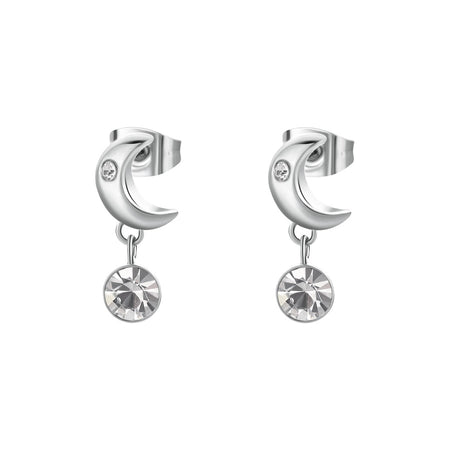 Orecchini in acciaio 316L a forma di luna e cristalli.
