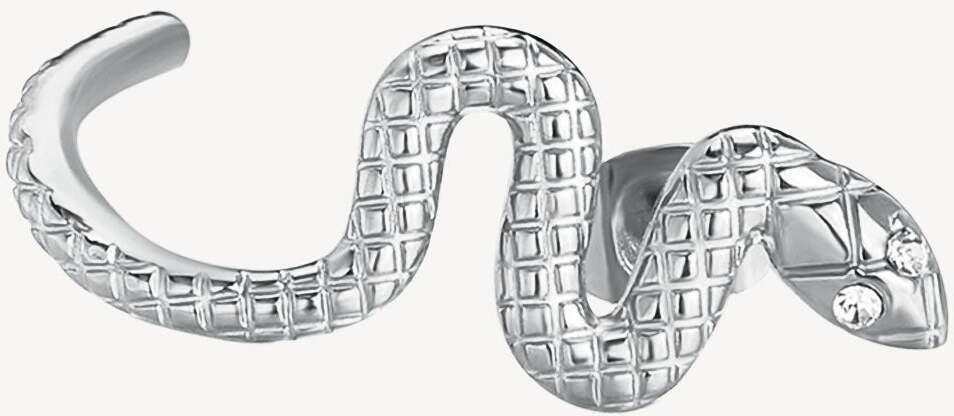 Orecchino singolo a lobo in acciaio 316L a forma di serpente e cristalli.