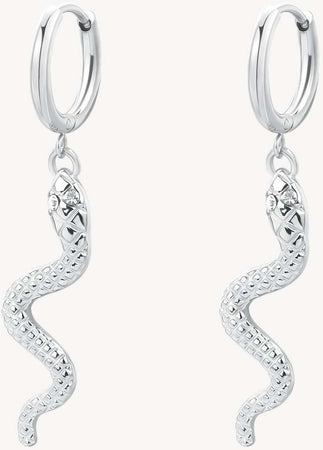 Orecchini pendenti in acciaio 316L a forma di serpente e cristalli.