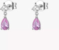 Orecchini pendenti in argento rodiato 925‰ con square cubic zirconia e pear cubic zirconia colore light ruby.