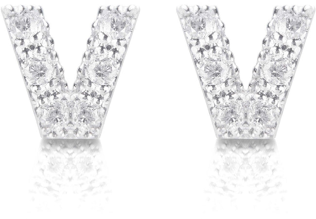 Orecchini argento 925 iniziale lettera V con zirconi