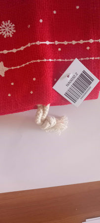 Borsa Natalizia rossa e bianca in tessuto di juta perfetta x fare il vostro regalo di Natale 38 cm / 40 cm