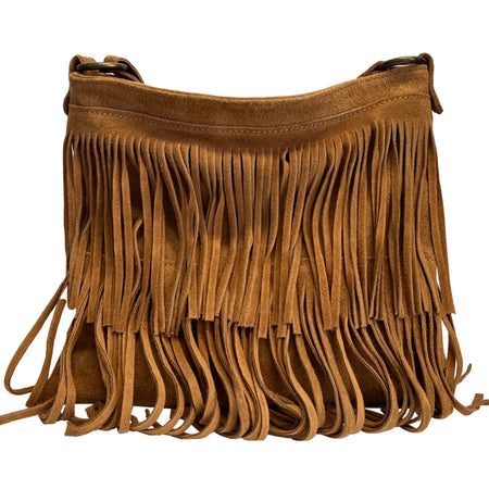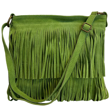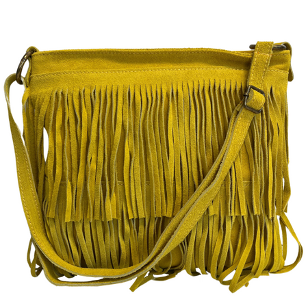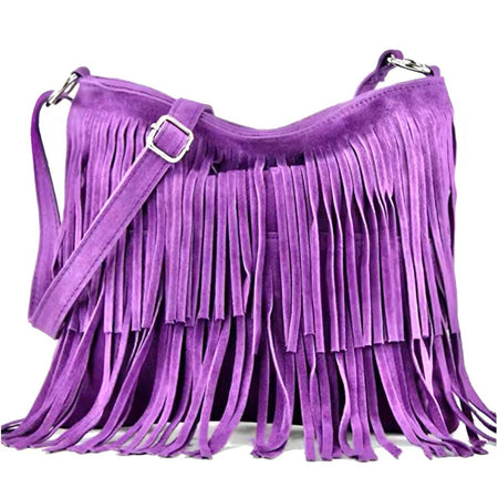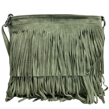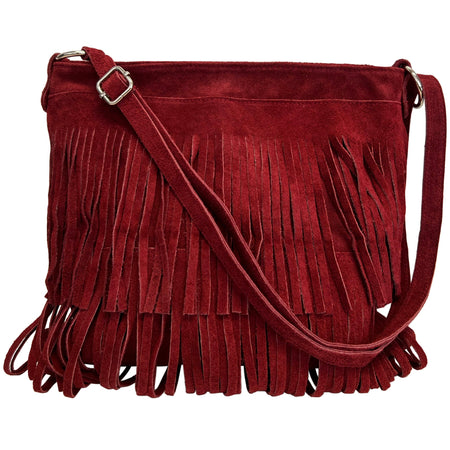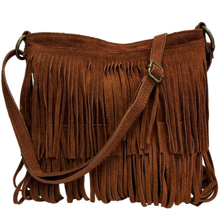 Modarno Borsa a tracolla con frange in camoscio - borsa tracolla donna in pelle scamosciata