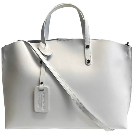 Borsa grande elegante da donna in pelle liscia, shopper interamente realizzata in Italia. Borsa per tutte le occasioni, adatta sia per il trasporto a mano sia per quello su spalla grazie alla tracolla removibile. Accessori metallici color canna di fucile e chiusura con bottone magnetico. Scomparto interno unico sfoderato, sacca interna removibile con chiusura zip. Struttura rigida e ottime rifiniture, prodotto con ottimo rapporto qualità-prezzo. Dimensione: ‎45x12x30 cm