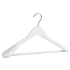 Con la sua ampia spalla, questa gruccia è progettata per sostenere i cappotti in modo sicuro, preservandone la forma e la struttura. La presenza della barra aggiuntiva offre ulteriore spazio per appendere pantaloni o gonne, ottimizzando lo spazio del guardaroba.