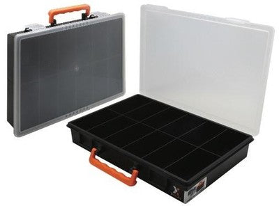 Con coperchio trasparente, 2  chiusure a scatto, dimensioni cm.: 35x25x5