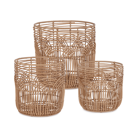 Set3 cesta sherly naturale in polyrattan, fil di ferro Ø 30 x h 30 cm ; Ø 35 x h 35 cm ; Ø 40 x h 40 cm