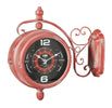 Biscottini Orologio bifacciale da parete tipo stazione in ferro finitura rosso anticato