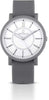 Orologio solo tempo di Ops Objects della collezione ops posh. Modello unisex con cassa in policarbonato rotonda di colore grigio, diametro cassa di 38 mm, cassa ultrapiatta dello spessore di 6 mm, indici a bastoni e quadrante grigio. Questo orologio ha cinturino passante in gomma di colore grigio, intercambiabile e movimento al quarzo. La resistenza all'acqua è di 5atm.