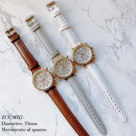 Orologio Da Polso Zcc 8057 Quarzo Analogico Brillantini Cinturino Pelle Casual