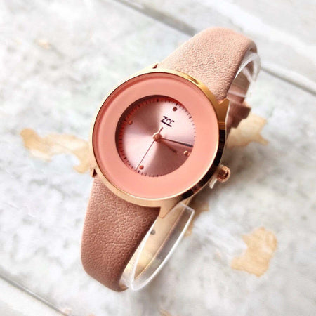 Orologio Da Polso Zcc Analogico Elegante Casual Moda Con Cinturino In Pelle Rosa