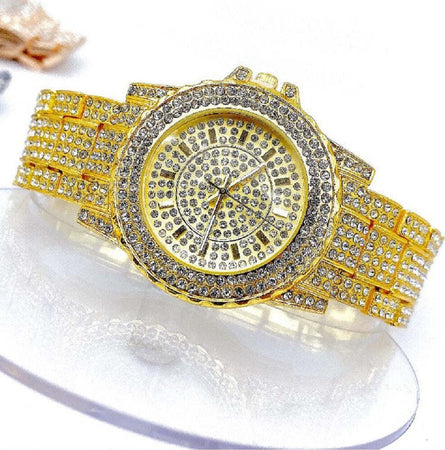 Orologio Da Polso Zcc Donna Analogico Quarzo Acciaio Moda Brillantinato Dorato