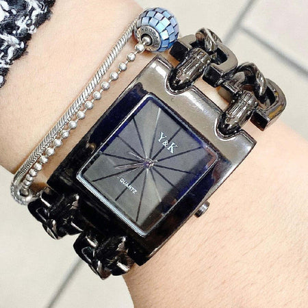 Orologio Donna Da Polso Y&k Analogico Quarzo Moderno Casual Moda Bracciale Nero