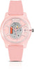 Orologio donna I AM THE WATCH. Cassa in policarbonato trasparente 40mm. Quadrante con indici e logo stampato. Porta-movimento in ABS. Fondello in acciaio. Movimento Japan Miyota 2035. Water resistant 5 atm. Cinturino in silicone.
