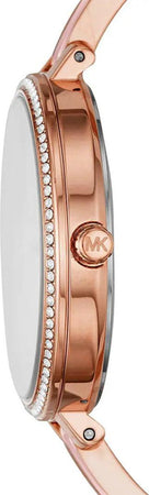 Orologio da polso per Donna Michael Kors della collezione Jaryn con Cassa in Acciaio inossidabile da 36 mm, Lunetta impreziosita da Zirconi, Bracciale in Acciaio Oro Rosa e acetato Rosa, Chiusura fibbia Clip a scomparsa, Movimento al Quarzo analogico, Water resistant 5 atm, Garanzia Ufficiale 2 anni Michael Kors e Confezione Originale Michael Kors.