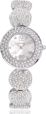Orologio Polso Donna Sousou S6097 Cuore Brillantini Movimento Al Quarzo Silver