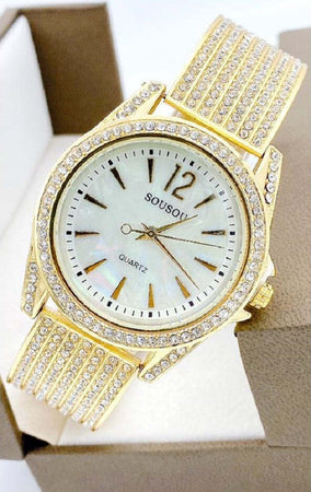 Orologio Polso Sousou 6733 Donna Quarzo Acciaio Brillantini Dorato Fondo Bianco