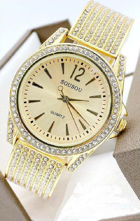 Orologio Polso Sousou 6733 Donna Quarzo Acciaio Moda Brillantini Dorato Fondo Oro